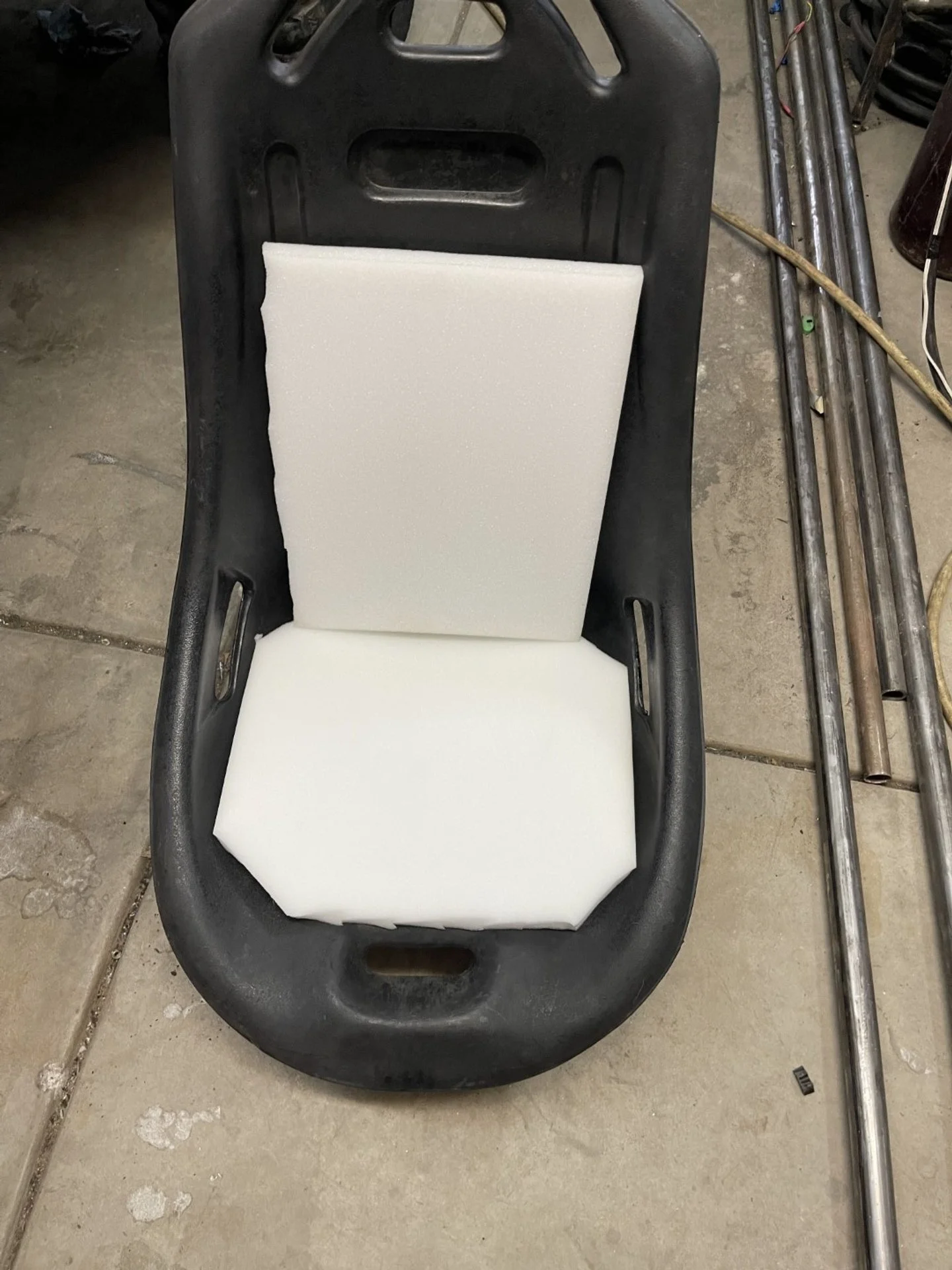 Lastly it’s time to install the seats for hopefully the last time. I cut up some extra 1” upholstery foam that I got from the local Walmart for just a few dollars. The padding that came with the seat covers was very thin. Then installed the seat covers and bolted the seats back in and installed the seat belts.
