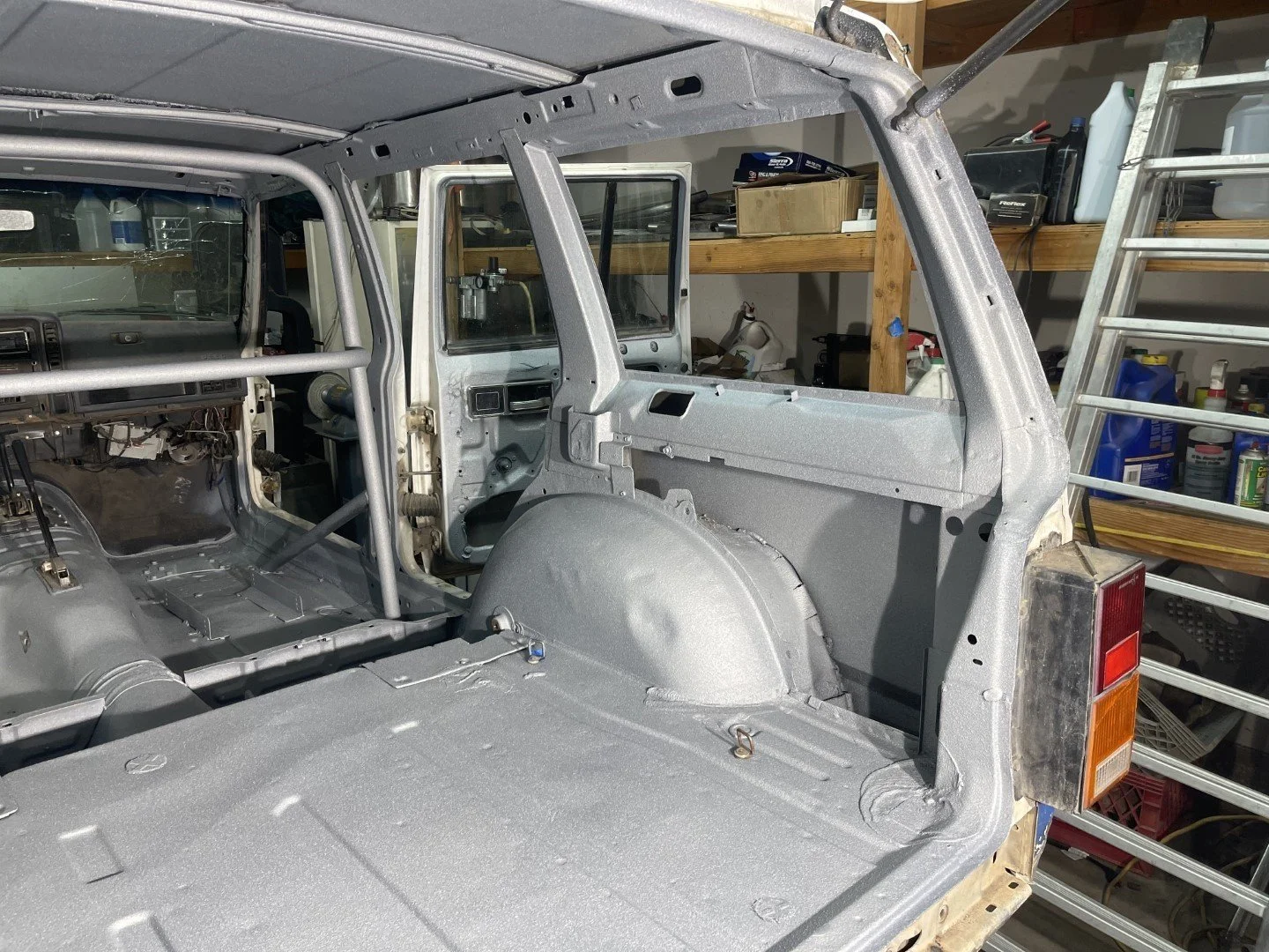 Unfortunately this update wont be super detailed, partly because paint or bed liner really, is all quite new to me and I dont want to give advice until I’m a bit more experienced. The second reason is I was was in a big hurry so the Jeep would be drivable by the weekend and it’s just a little hard to document and be fast so I apologize if some details are missing.