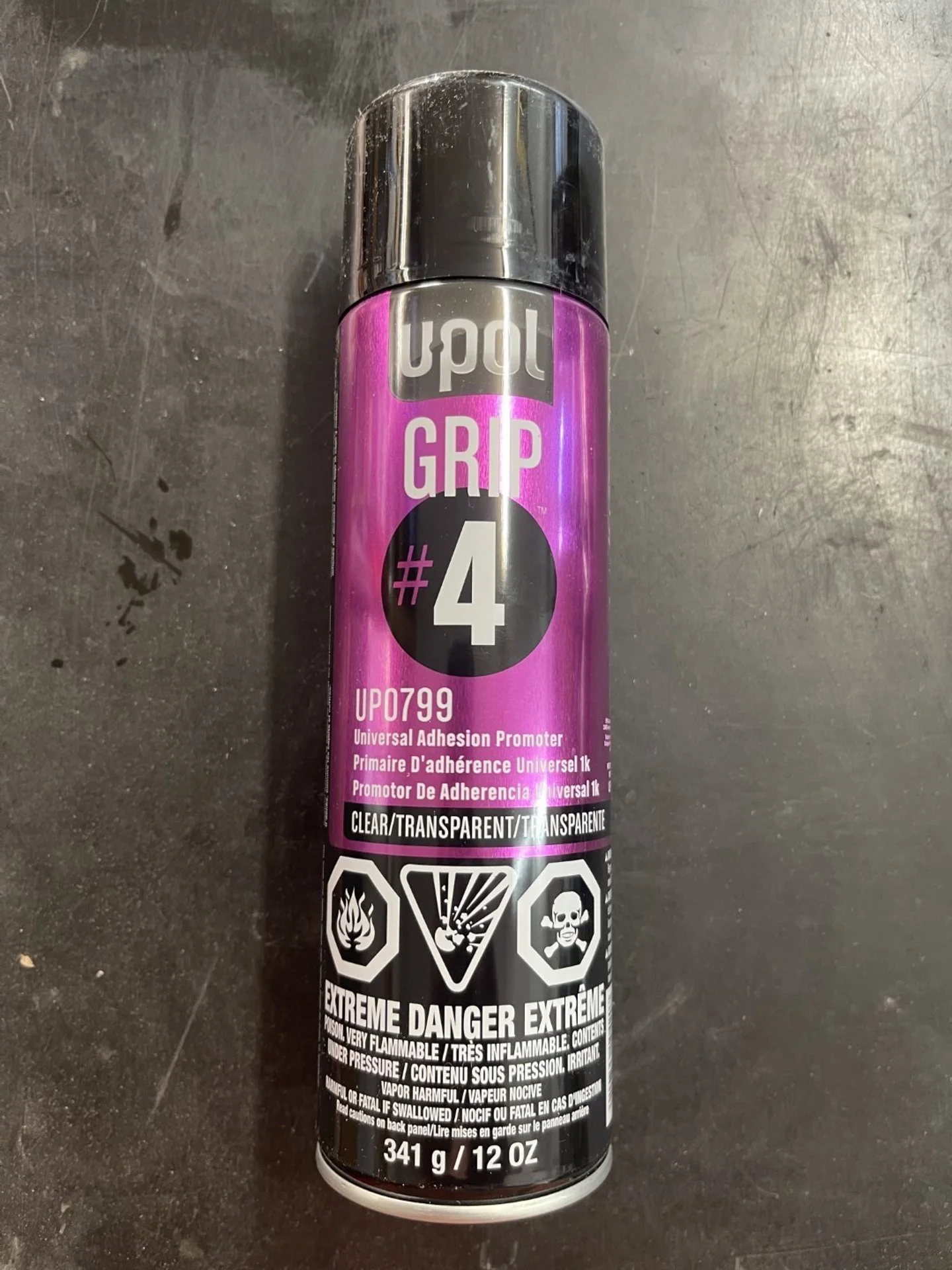 After masking was done everything was wiped down with the degreaser again. In hard to reach areas or areas that may have trouble adhering I sprayed on an adhesion promoter ( Upol Grip#4). I sprayed this stuff in corner’s, seams and on top of body filler, pretty much anywhere that was hard to clean and or wipe with degreaser.